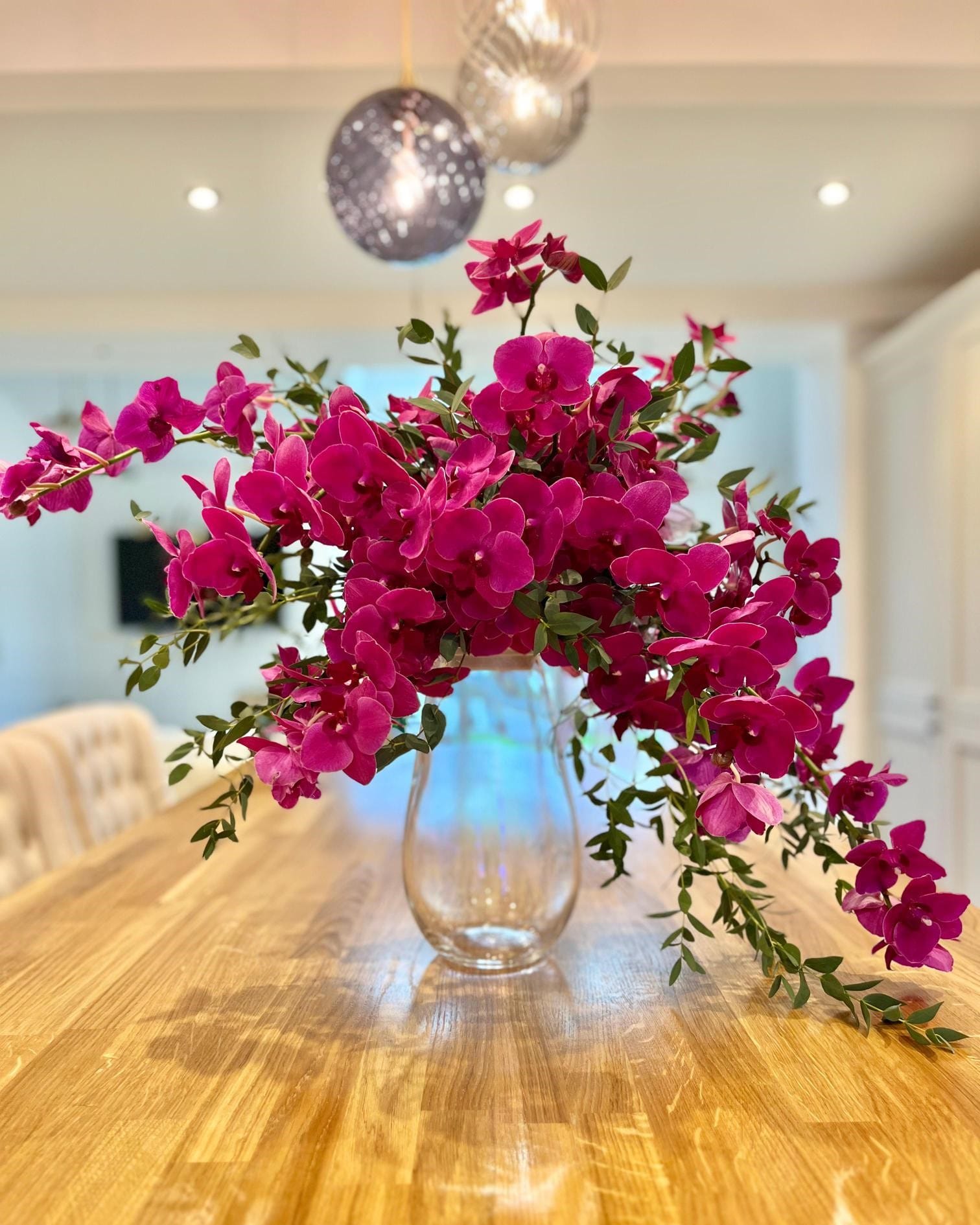 Like magic! Vivid fuchsia flowers drape from a seemingly empty vase.