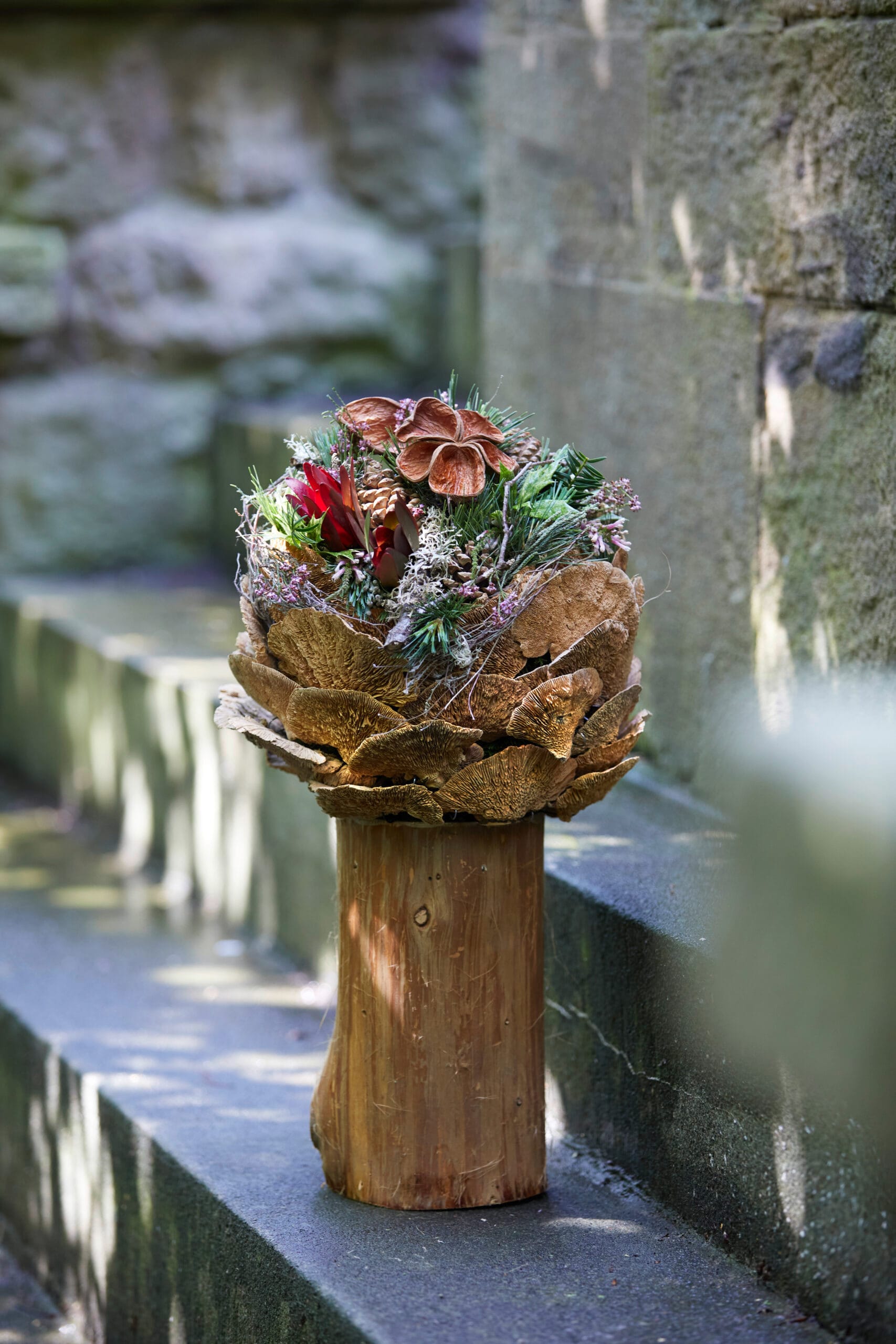 Neutral colors and distinctive details compliment each other for a striking, untraditional sympathy arrangement.