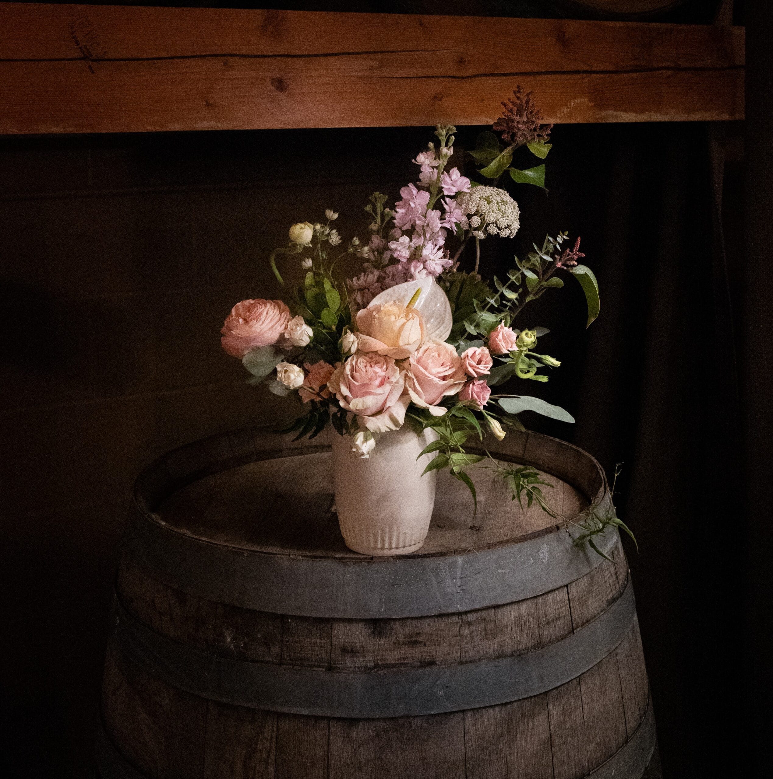 A romantic color palette with textured blooms creates a dazzling bouquet.