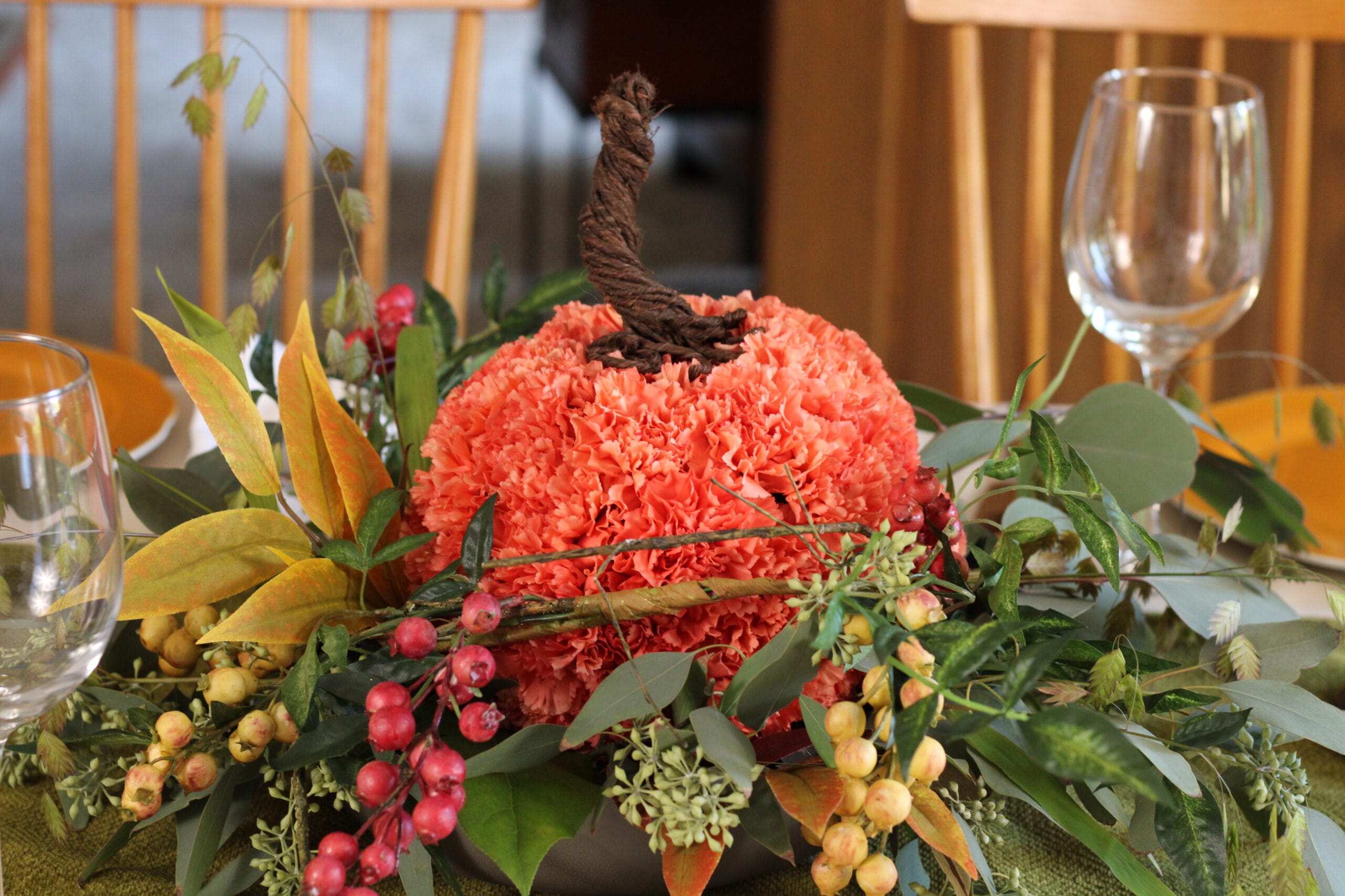 Autumn magic: A pumpkin crafted entirely from flowers.